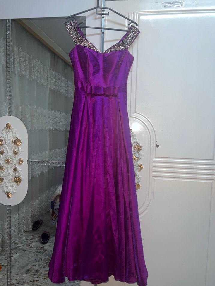 Parlak Mor Uzun Abiye Elbise
