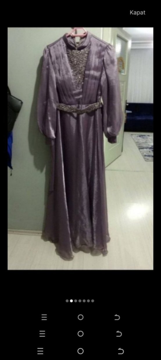 Parlak mor renkte, uzun kollu ve yüksek yakalı, drapeli, vücuda oturan uzun abiye elbisedir. Düğün ve özel davetler için uygundur.