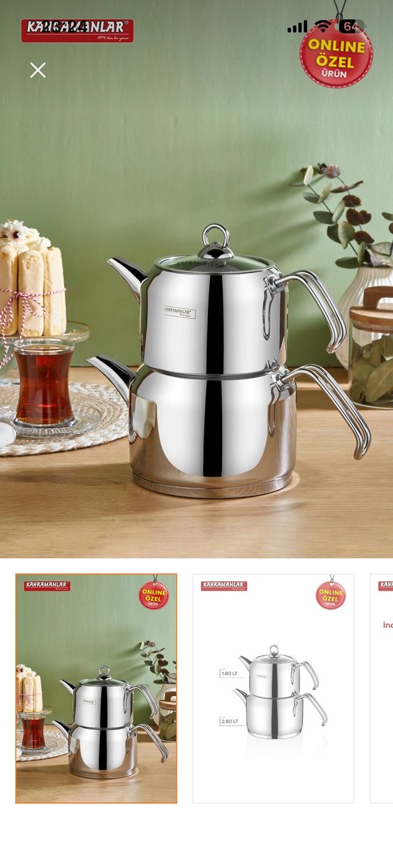 Parlak paslanmaz çelikten yapılmış, ergonomik saplı ve kapaklı üst üste yerleştirilen iki parçalı çaydanlık seti. ☕ Kahramanlar Delux Mega Boy Gold Çaydanlık Takımı Keyifle demlenen çaylar için şıklık ve kalite bir arada! •Demlik Ölçüsü: 1,5 LT •Suluk Ölçüsü: 2,9 LT •Ürün Materyali:18/10 Paslanmaz Çelik •Kapak Materyali:Cam •Parça Sayısı:4 •Buhar Kapağı:Mevcut •Renk :Gold Kahramanlar güvencesiyle sofralarınıza lezzet ve zarafet katın!