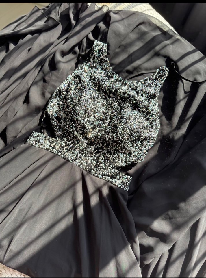 Payetlerle kaplı, kolsuz ve tekne yaka dar kesim kadın abiye bir kez kullanılmıştır. Kuru temizleme yapılmıştır herhangi bir deformasyonu yoktur. Bel detayı ve sırt dekoltesi bulunmaktadır. Detaylı gösterim sağlanır .