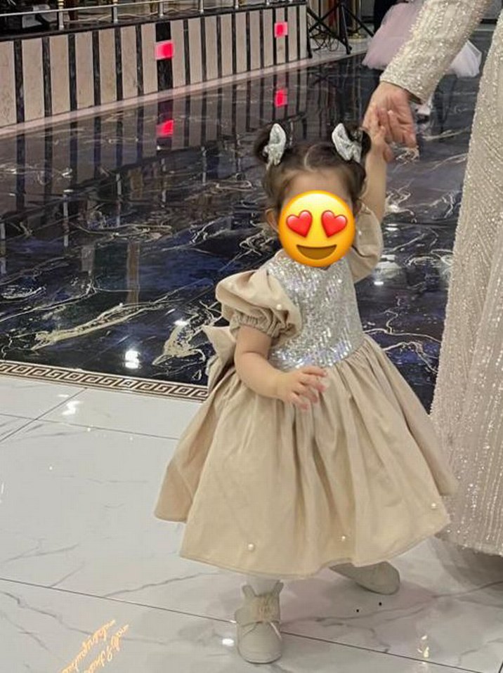 Parlak Payetli Bej Kız Çocuk Elbise abiye