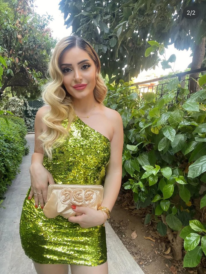 Parlak payetlerle süslenmiş, straplez ve etnik desenli khaki mini kokteyl elbisesi, şık ve göz alıcı bir parti stili sunar. ✨