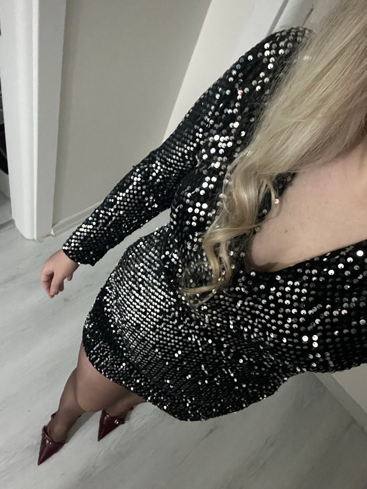 Parlak payetlerle kaplı, V yakalı ve kısa kesim bu elbise, cesur parti stilleri için uygundur. Uzun kollu ve vücuda oturan tasarıma sahiptir. ✨