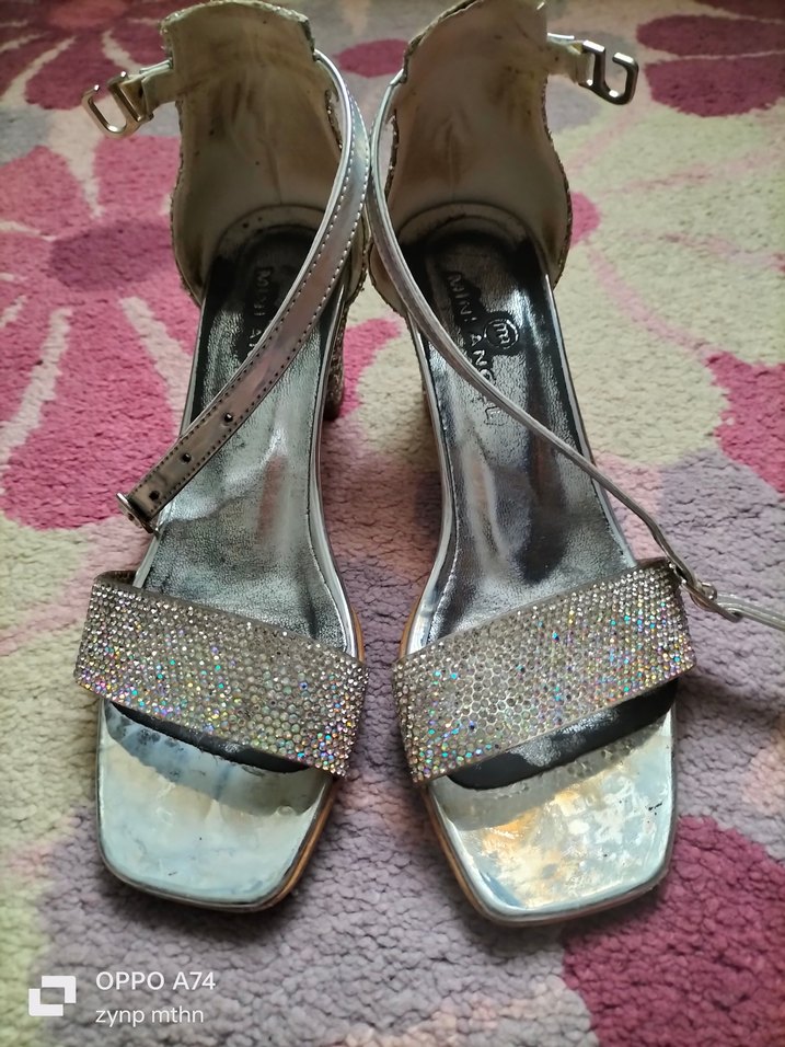 Parlak payetli ön bant ve çağdaş çok renkli desenlere sahip yüksek topuklu kadın ayakkabısı, düğünler için uygundur. Malzemesi yumuşak kauçuktur.