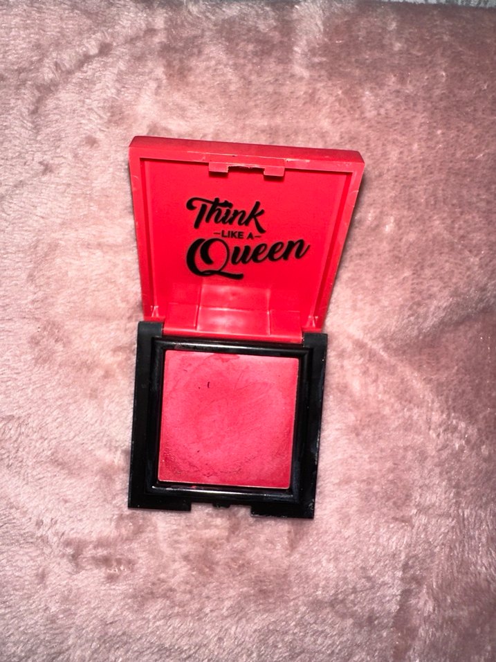 Parlak pembe renkte, kapağında "Think like a Queen" yazısı bulunan allık. Canlı bir makyaj dokunuşu sağlar.