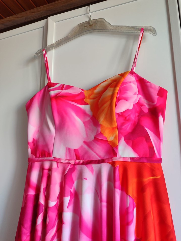 Parlak baskılı kumaştan, askılı ve straplez yakalı, kısa ve fitted kesim hamile tulumu. Arkada fermuarlı, günlük kullanım için uygun. ✨