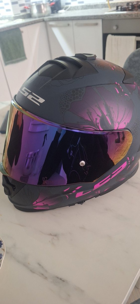 Parlak yüzeye sahip koyu plastikten yapılmış, pembe baskılı bu motosiklet kaskı, rock punk sokak stilini yansıtıyor. Tonlu vizör bulunur. ️Sadece 1 kez kullanıldı. Temizdir. Herhangi bir defosu yoktur.