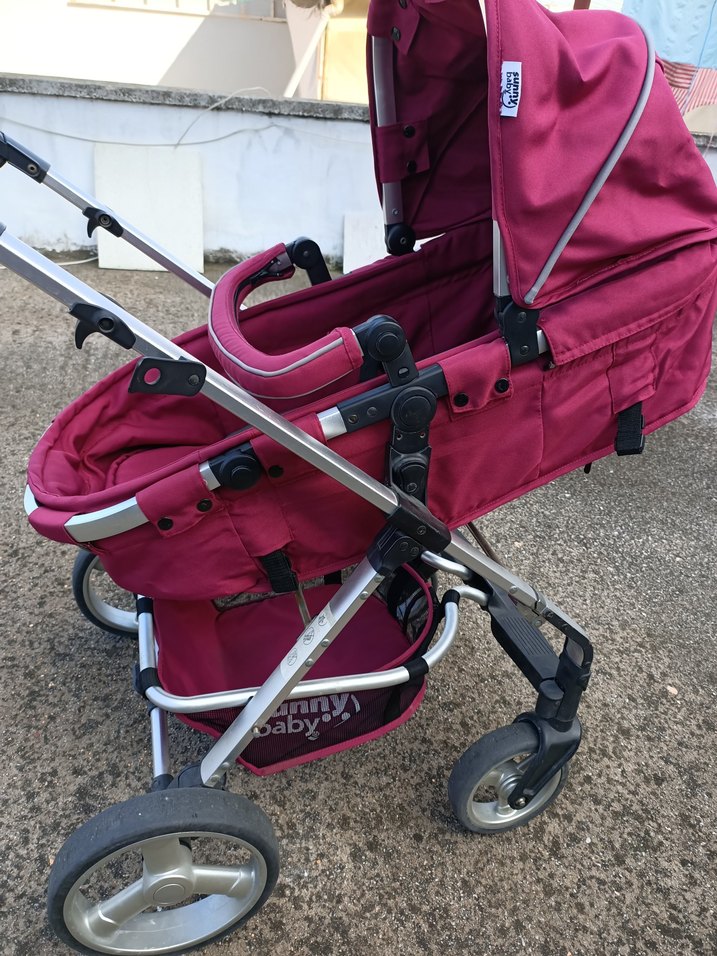 Puset ve araba Parlak pembe kumaş ve sağlam çerçeveye sahip bu bebek arabası, ayarlanabilir tente ile konfor ve kullanım kolaylığı sunar.