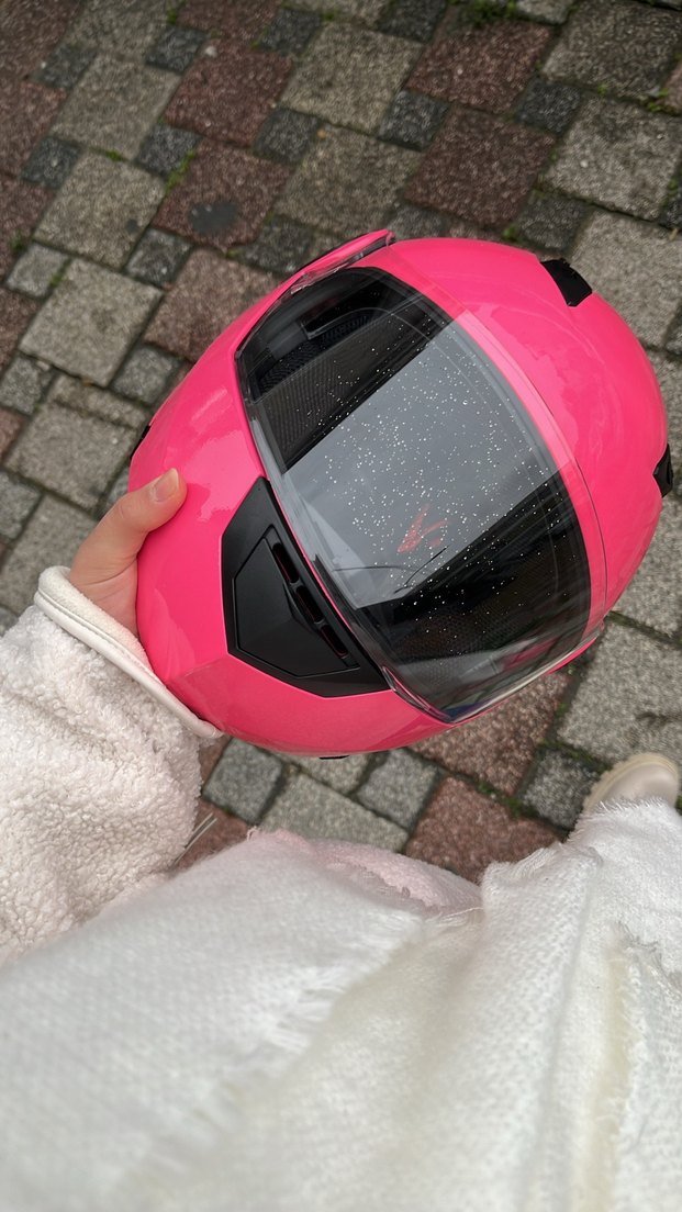 Parlak pembe renkte, plastik malzemeden yapılmış, şeffaf vizörlü ve desen içermeyen biker motosiklet kaskı. Sokak tarzı ve rock punk havası taşıyor. ️ Birkaç ay kullanabildim artık kullanamıyorum