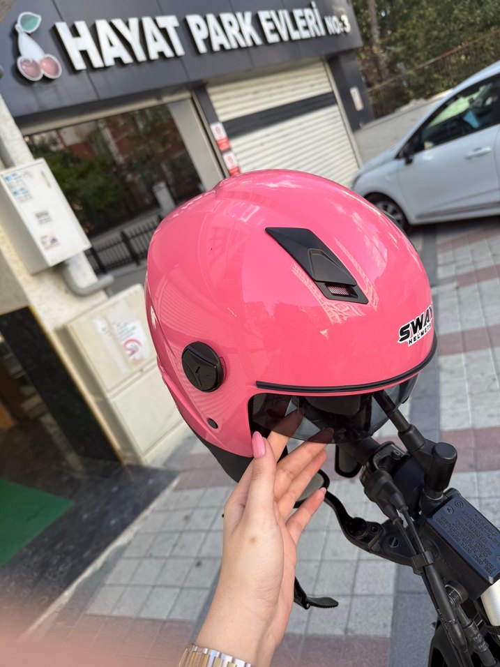 Parlak Pembe Biker Motosiklet Kaskı S beden