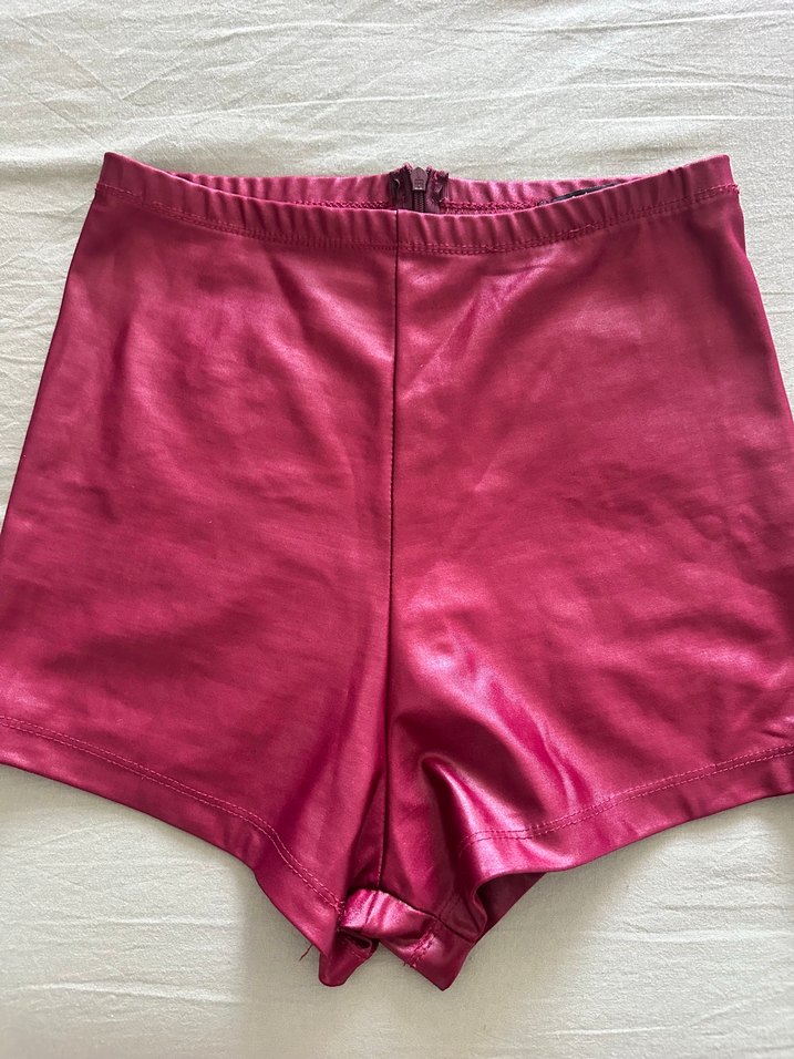 Parlak Pembe Deri Mini Şort