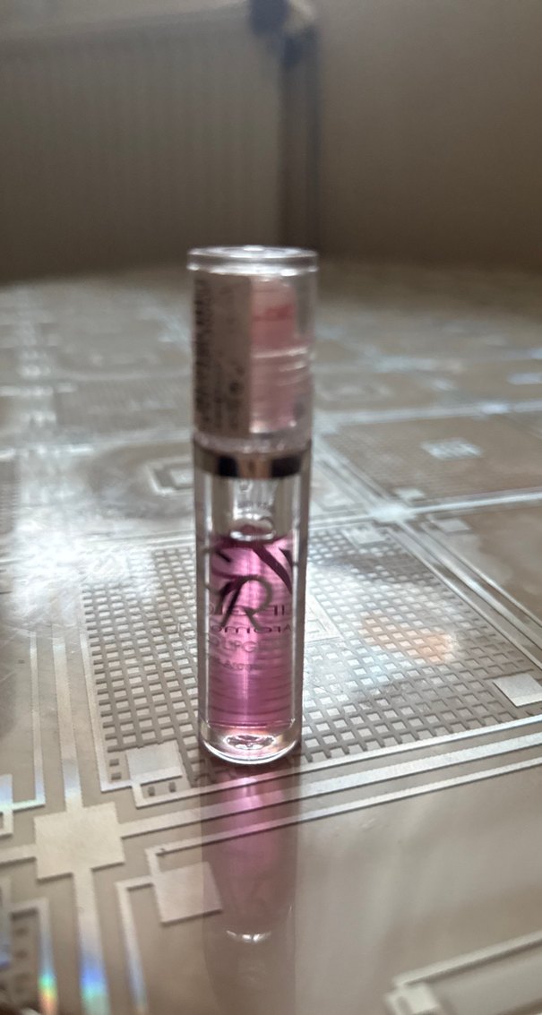 Parlak pembe renkte dudak parlatıcısı, dudaklara hafif parlaklık ve yumuşak dokunuş sağlar.