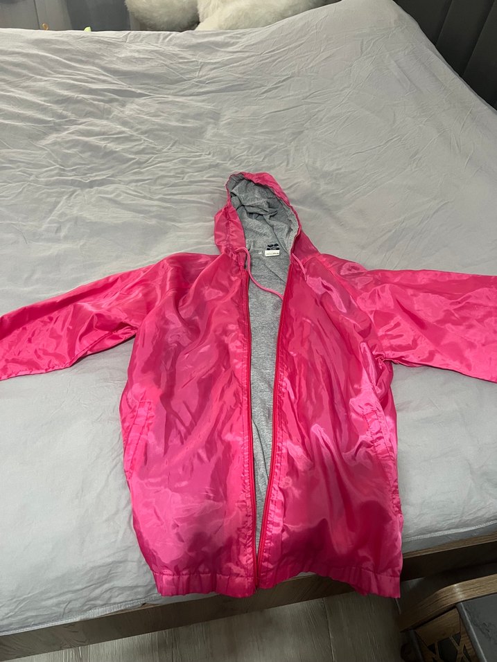 Parlak Pembe Fermuarlı Yağmurluk