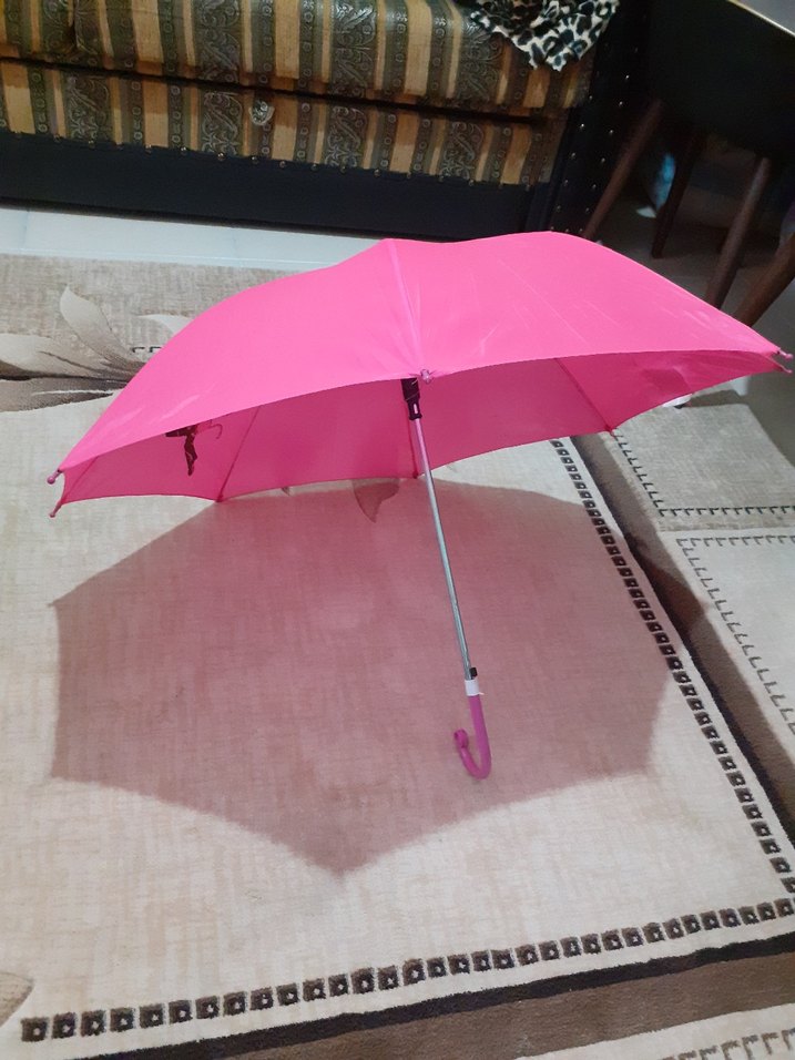 Parlak pembe kanopiye sahip, minimalist ve sade tasarımlı çağdaş kadın şemsiyesi. Kavisli sap bulunur. ☂️ Çok yeni