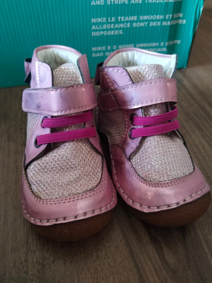 Parlak pembe renkli, kaymaz kauçuk tabanlı ve cırt cırtlı kız bebek ilk adım ayakkabısı. Desensiz, modaya uygun ve yenilikçi tasarım.