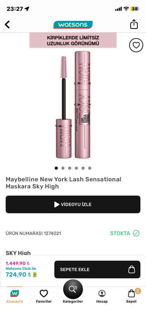Parlak Pembe Maskara SKY HİGH MASKARA 0 ambalajlı watsonsdan ald