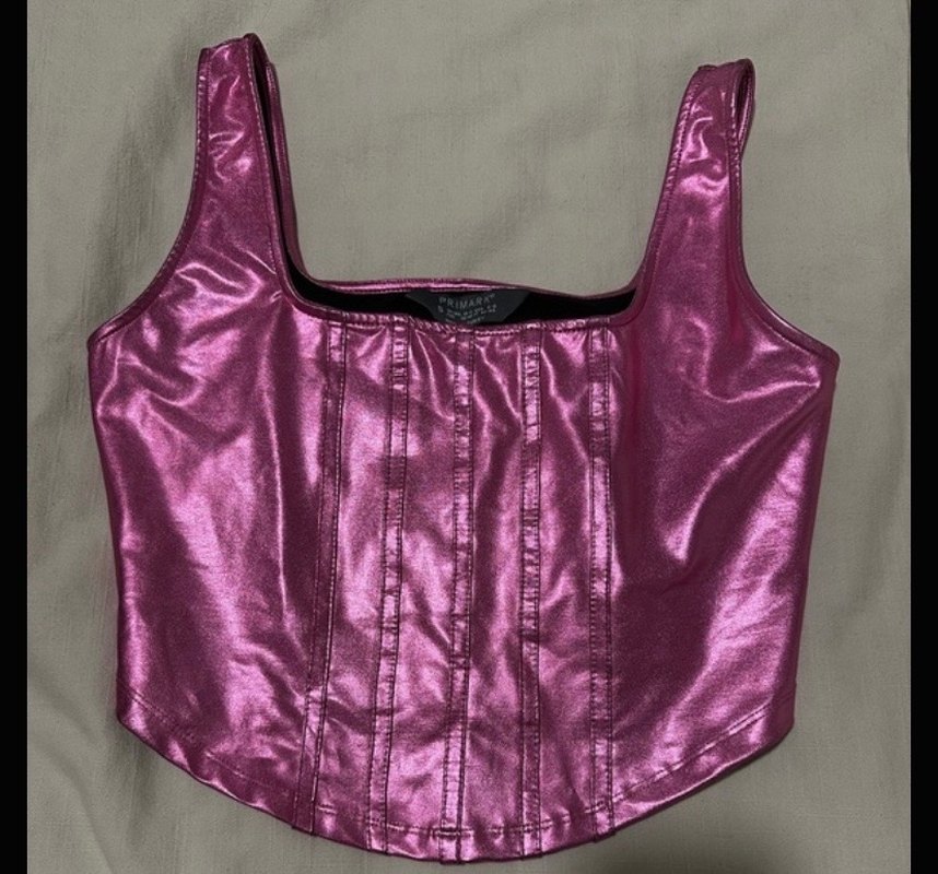 Parlak pembe sentetik kumaştan, vücuda oturan straplez midi uzunlukta büstiyer. Streetwear ve athleisure tarzlarına uygundur. ✨ Etiketlidir.