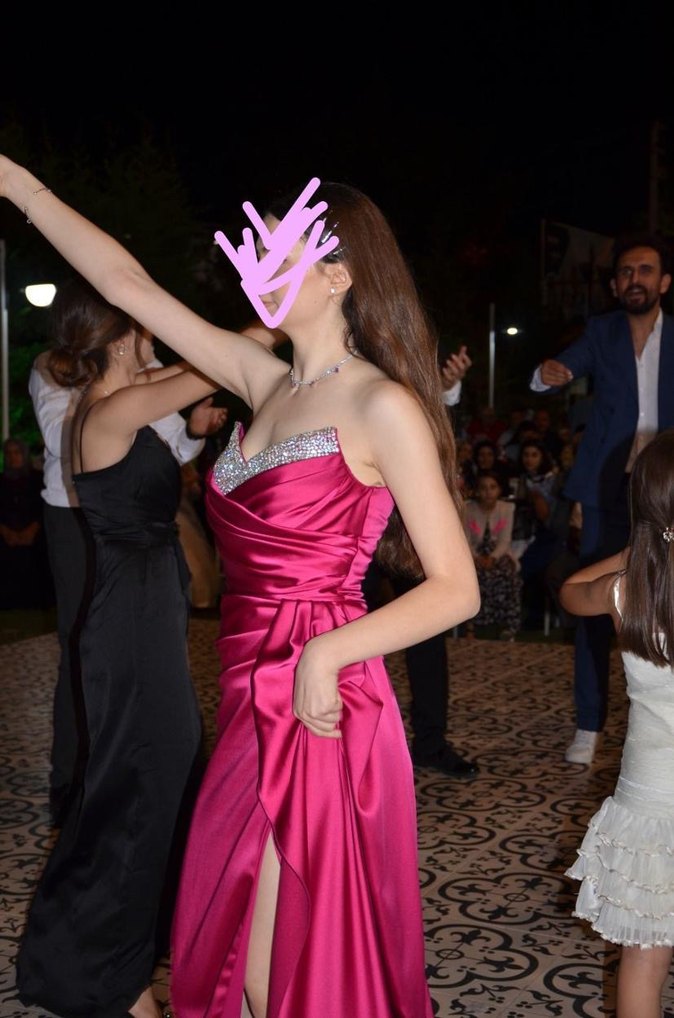 Saten gösterişli taş detaylı abiye.