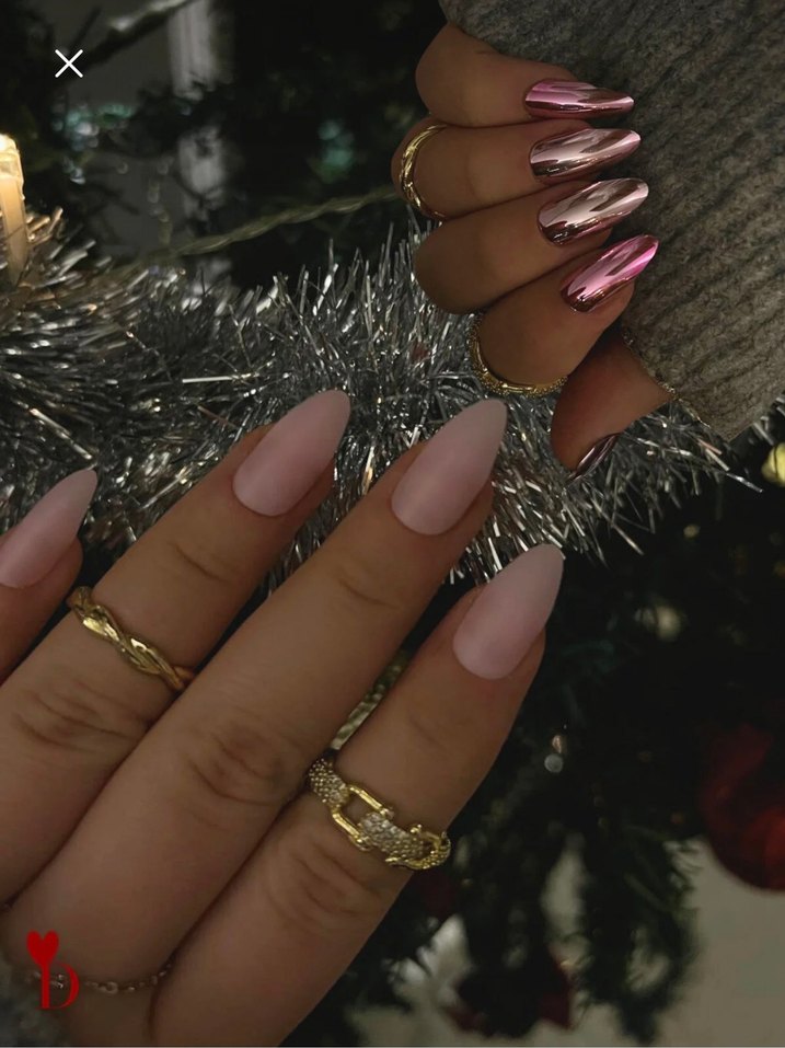 Mat ve metalik parlak pembe tırnak süslemeleri, tırnaklara canlı bir tarz katıyor.
