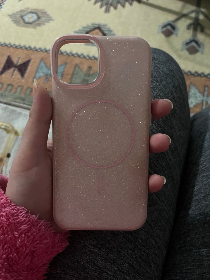 Parlak yüzeyli koyu pembe telefon kılıfı, hafif simli ve dairesel desenli. Telefonunuza uyum sağlar ve farklı bir tarz sunar.Bazı yerlerinde sararmalar mevcut İPhone 13 Telefon kılıfı.