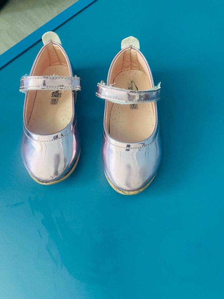 Parlak pembe renkte, metal tokalı kız çocuk babet ayakkabısı. Düz yüzeyli ve sokak modasına uygun rahat bir tasarım. Arkalarında kelebek vardı düştü ikisininde.