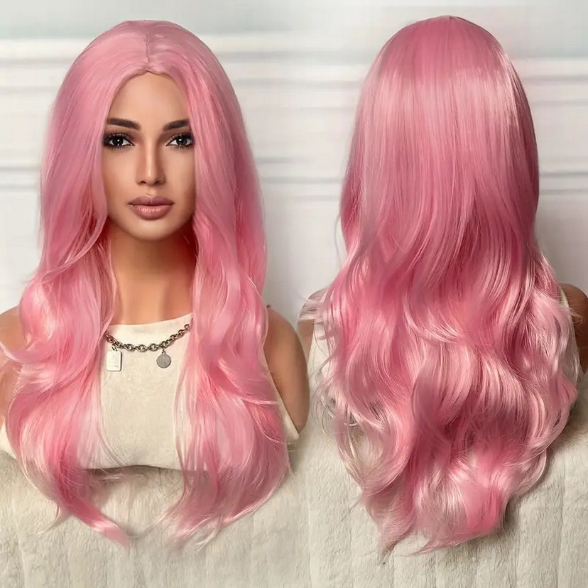 Parlak pembe uzun dalgalı sentetik peruk, ipeksi ve göz alıcı görünüm sunar. Bohem ve retro tarzlar için uygundur. 2 defa kullanıldı.