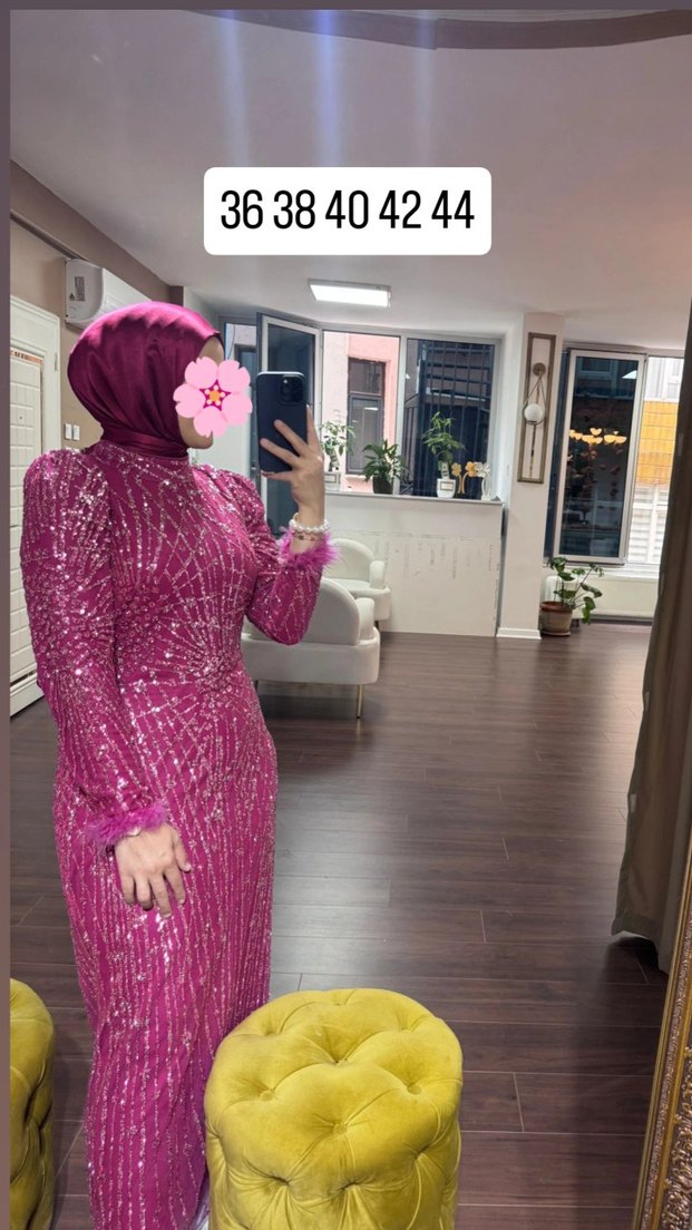 Parlak pembe, uzun ve drapeli bu abiye elbise, yüksek yakalı ve uzun kolludur. Bağlama desenli kumaşıyla gösterişli ve zarif bir görünüm sunar. 36-44 beden aralığında. ✨
