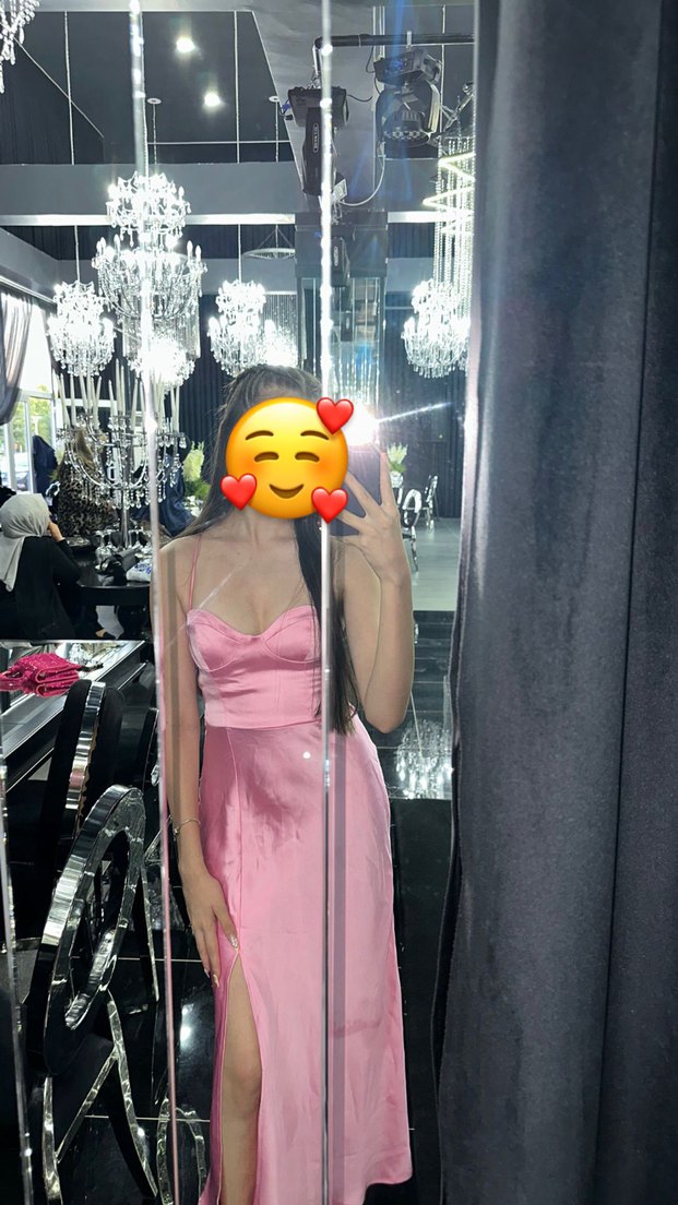 saten pembe elbise cok guzel bir kez dugunde giydim sorunsuz