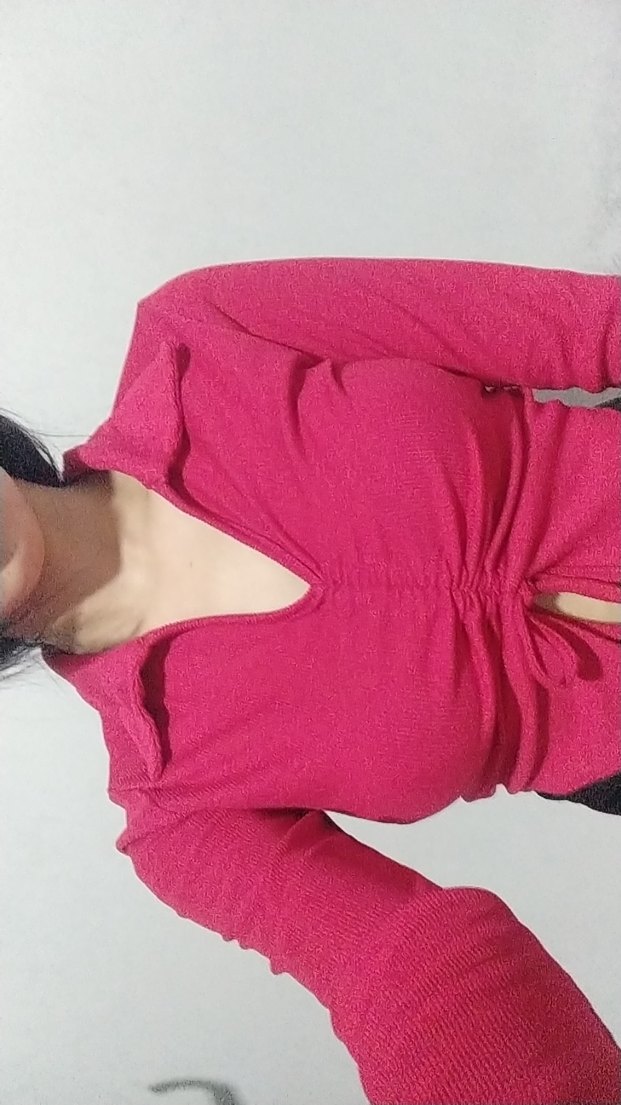 Parlak pembe renkte, V yakalı ve keten kumaştan kadınlar için fitted kesim kazak. Uzun kollu ve midi uzunluğunda, günlük kullanıma uygun rahat ve şık bir parça.