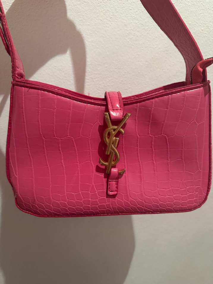 Cesur kadın çantası, parlak pembe yılan derisi desenli deri ve tokalı kapanışa sahiptir. Paris sokak modası tarzında, romantik akşamlar için uygundur.
