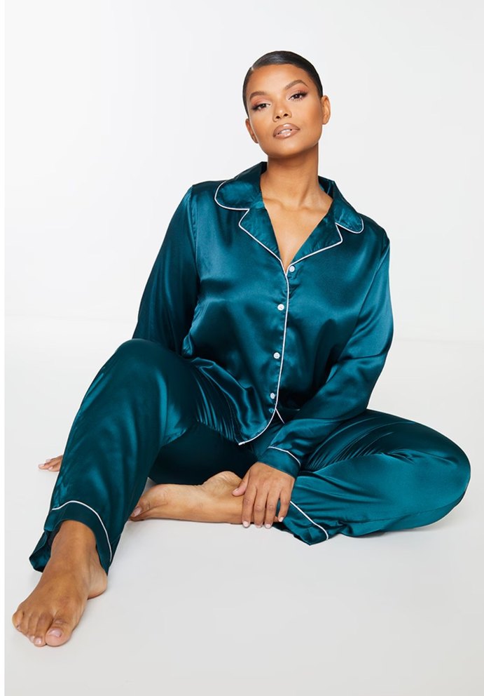 Parlak petrol yeşili Uzun Kollu Kadın Pijama Takımı