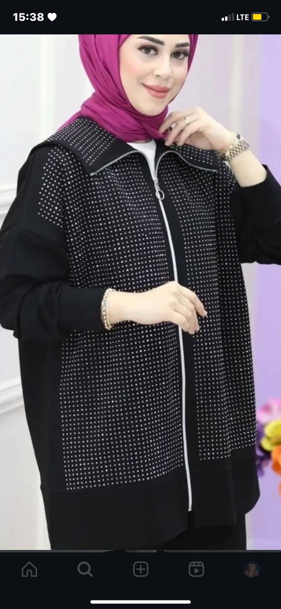 Siyah, uzun kollu, bol kesim kadın ceketi. Balıkçı yaka ve parlak pul detaylıdır.✨36-38 beden uyumlu