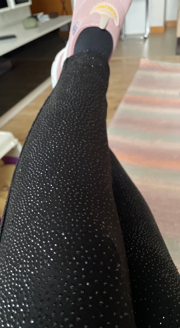 Yılan desenli ve parlak pul detaylı, siyah renkli, yumuşak sentetik kumaştan yapılmış dar kesim tayt. Cesur athleisure tarzlar için uygundur.