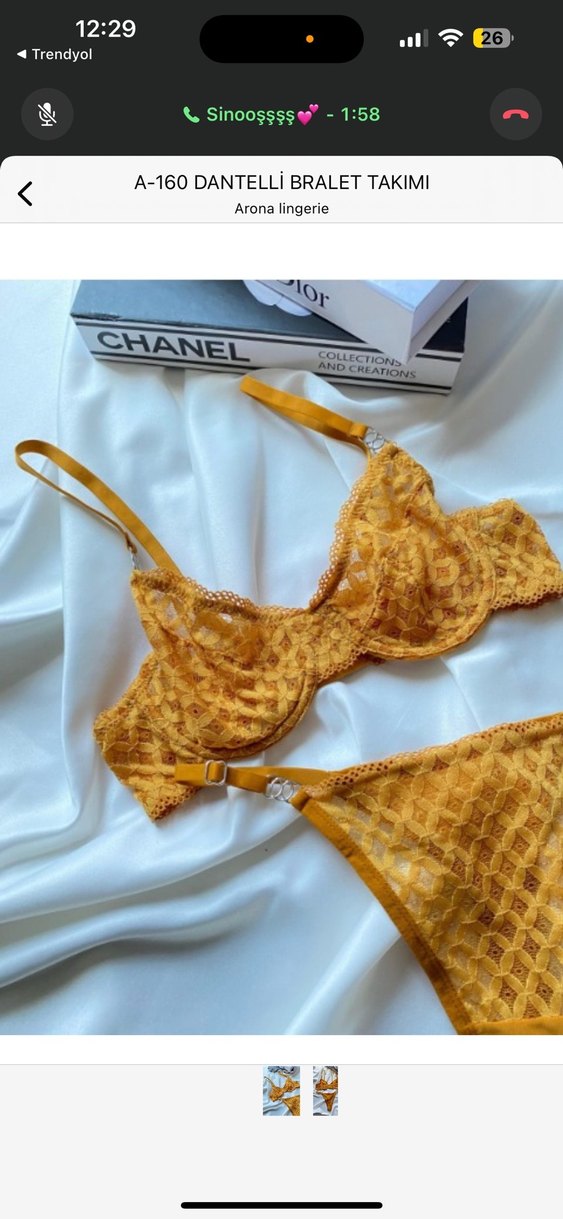 Parlak sarı renkte, bohem tarzda, vintage görünümlü dantel detaylı sütyen. Ayarlanabilir askıları ve zarif dantel dokusu vardır. Üzerinde 'CHANEI' markası bulunur.