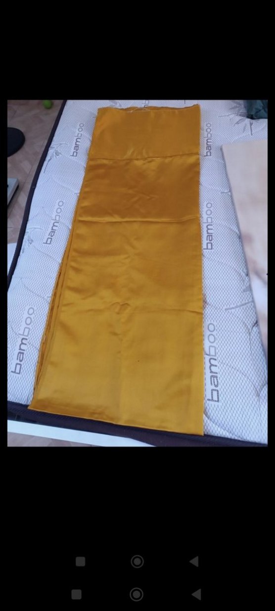 Parlak sarı düz kumaştan yapılmış yatak örtüsü. çarşaf