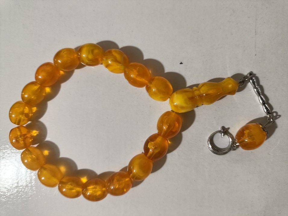 Parlak sarı renkte, sade bohem tarzında, yuvarlak ve pürüzsüz boncuklardan oluşan erkek tesbih.