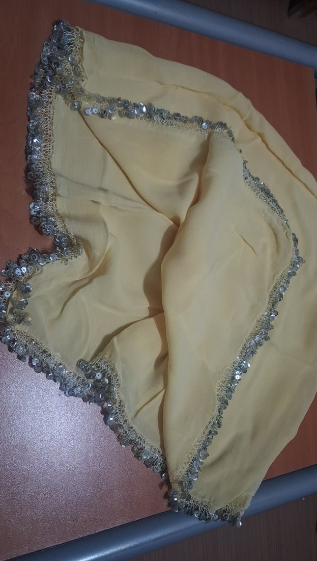 Parlak sarı renkte , dört kenarı pul işlemeli . Bohem ve retro tarzlara uygun, şık ve gösterişli görünüme sahip.ölçüleri 70×70cm dir.kumaşı demur dur.