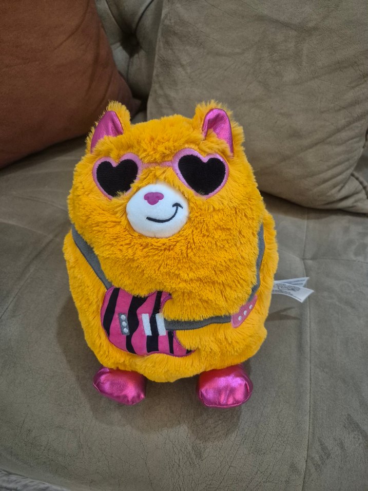 Parlak sarı renkte, yumuşak dokulu Misfittens peluş oyuncak, sarılmak için uygundur.