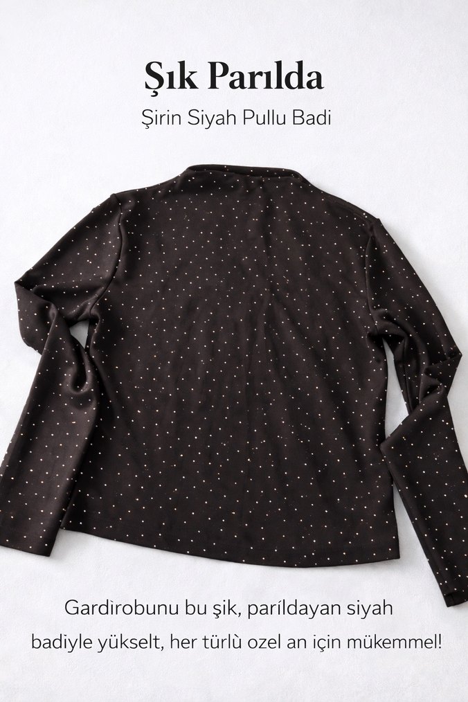 Parlak simli boğazlı badi siyah