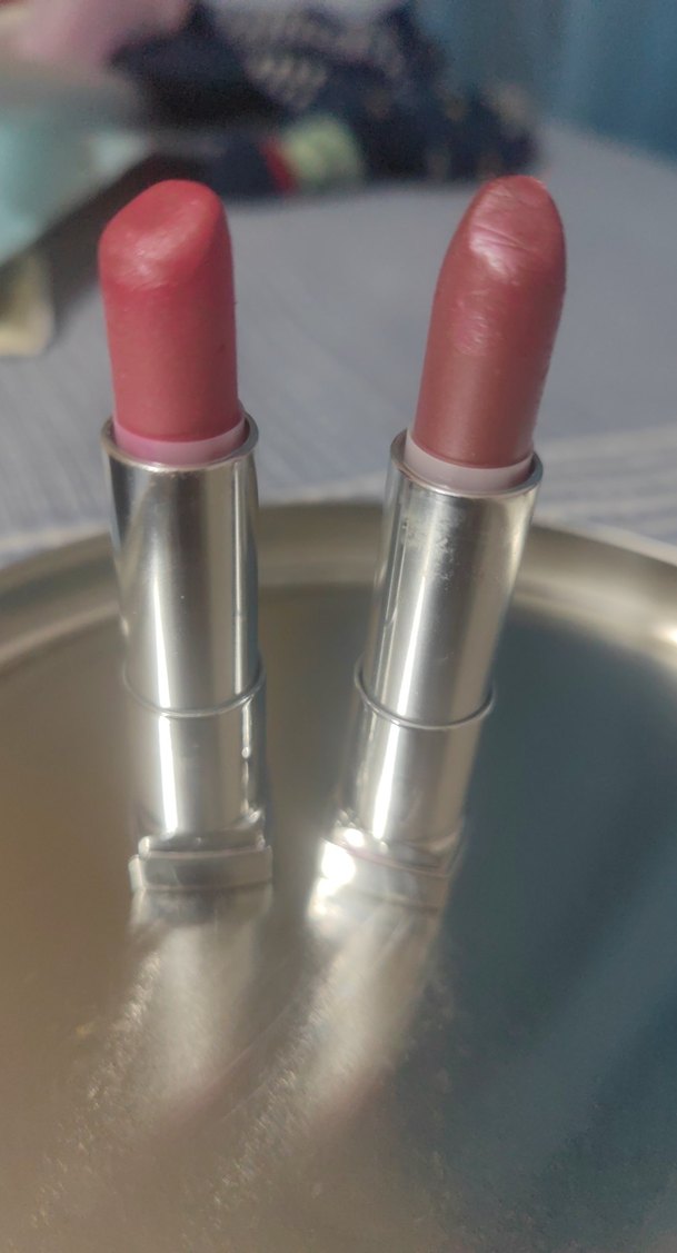 Parlak simli iki adet Pembe ve bronzRuj İkili