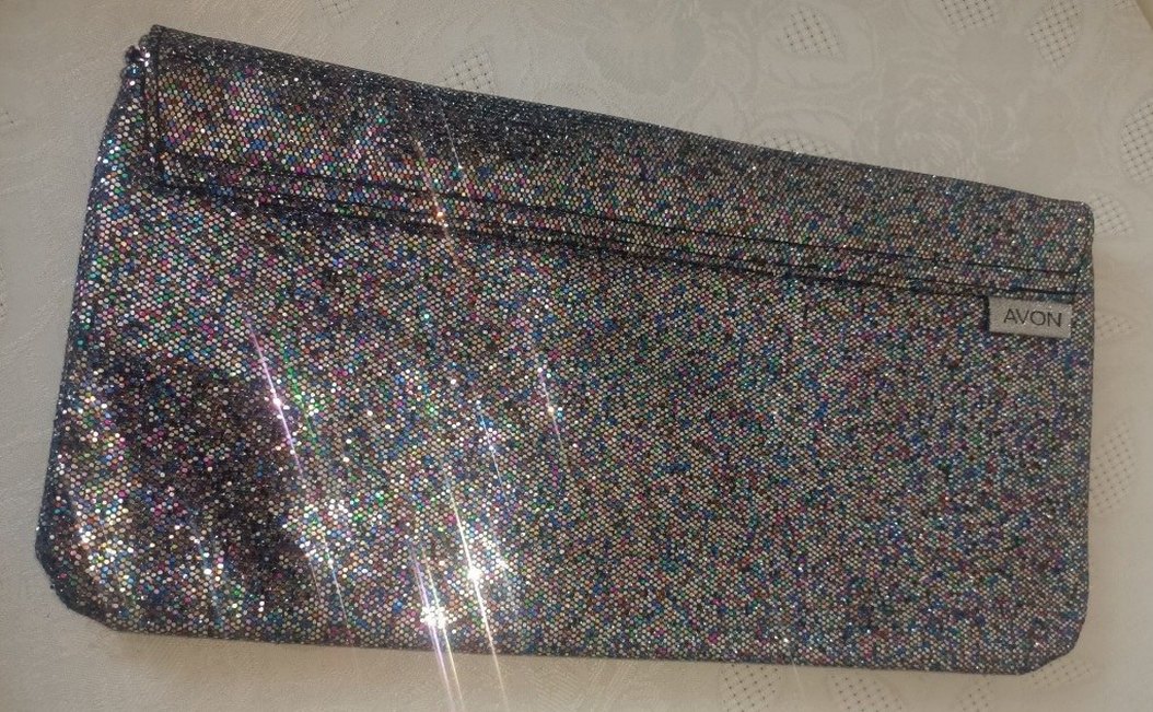 Kadınlar için çok renkli, parlak ve simli detaylara sahip sentetik kumaştan portföy çanta. Hiç kullanılmadı yeni