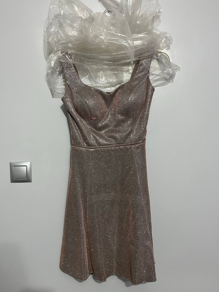 Vücuda oturan kesimi ve drapeli detaylarıyla şık bir görünüm sunar. ✨ sırt dekolteli, rengi yanar döner bir rose gold bedeni 1 numara S-M uyumlu