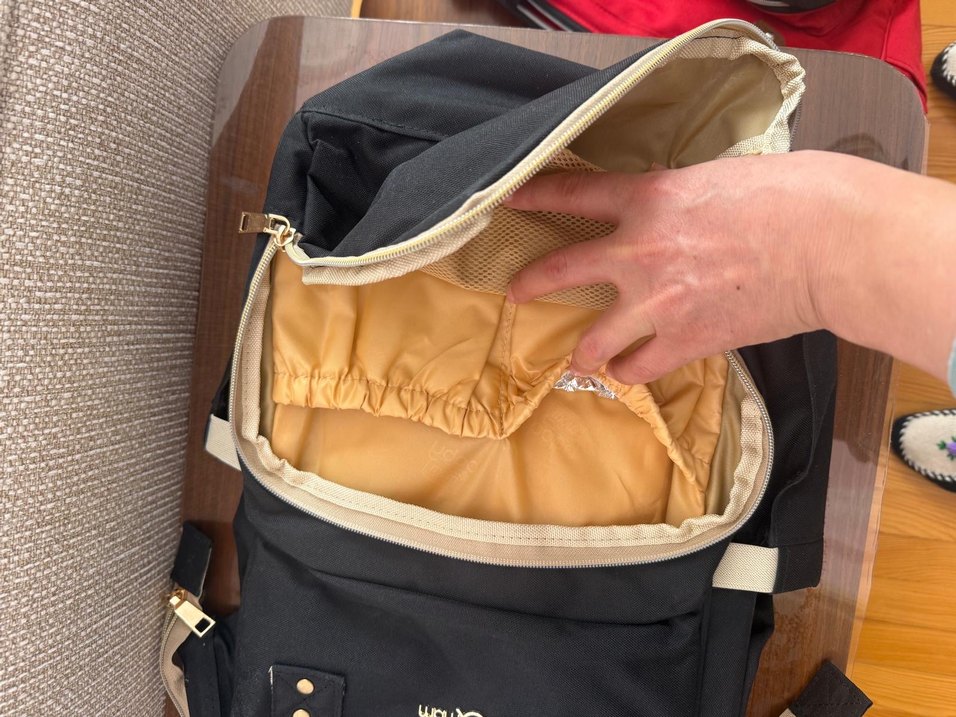 P siyah renkli bebek çantası, içinde bebek eşyalarını düzenlemek için elastik cepler ve bölmeler içerir. İç kısmında termoslu biberon cebi mevcuttur