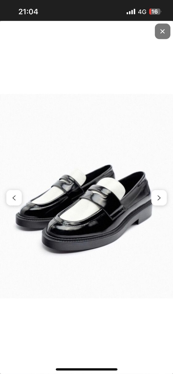 Parlak Siyah-Beyaz Tokalı Kadın Loafer zara