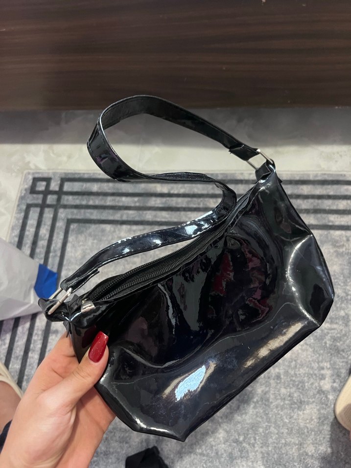 Parlak Siyah Deri Kadın Çanta