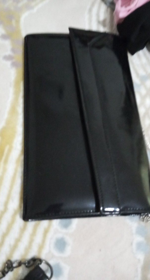 Ofis ve iş ortamları için uygun, parlak siyah deri ve desensiz tasarıma sahip clutch çanta. Gotik tarzda moda öncülerine uygun.