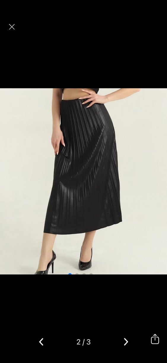 Parlak siyah , pileli detaylı, fit kesim uzun etek. 95 cm hiç giyilmedi standart bedendir