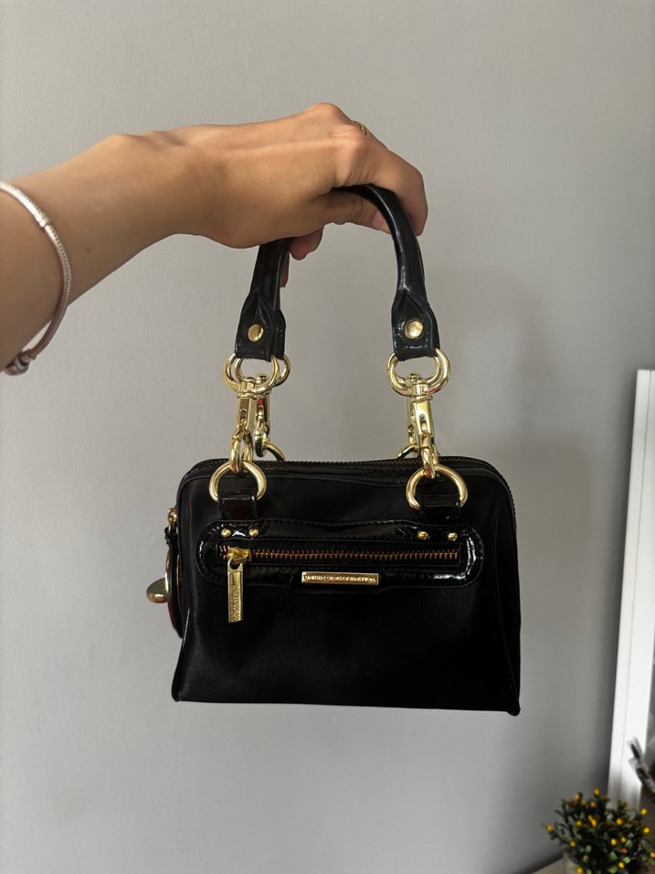 Parlak siyah saten ve deri kombinasyonlu, fermuarı kilitlenebiliyor markası benetton dolapta duruyordu fazlalıktan satıyorum