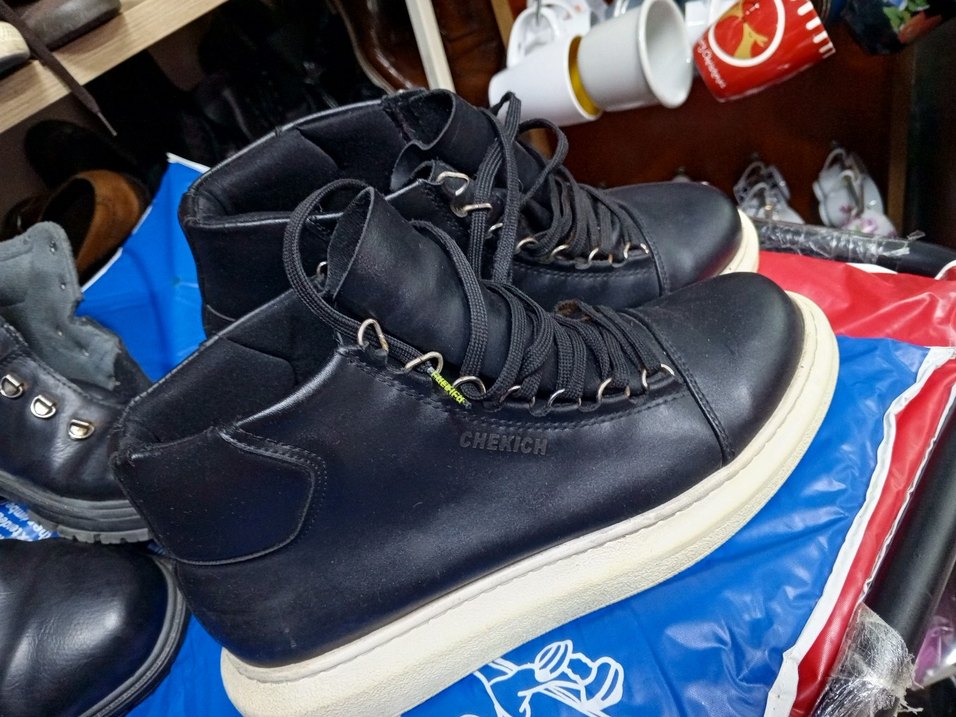 Parlak siyah renkli, CHEKICH markalı erkek bağcık, sokak stili ve street wear tarzına uygun. 42 NUMARA