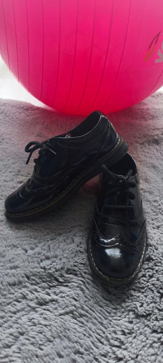 Parlak siyah, lastik malzemeden yapılmış, desen içermeyen goth tarzı erkek çocuk ayakkabısı, düğün için alındı 1 ya da 2 kez giyildi. Özel günler için çok uygun tertemiz rugan parlak deri